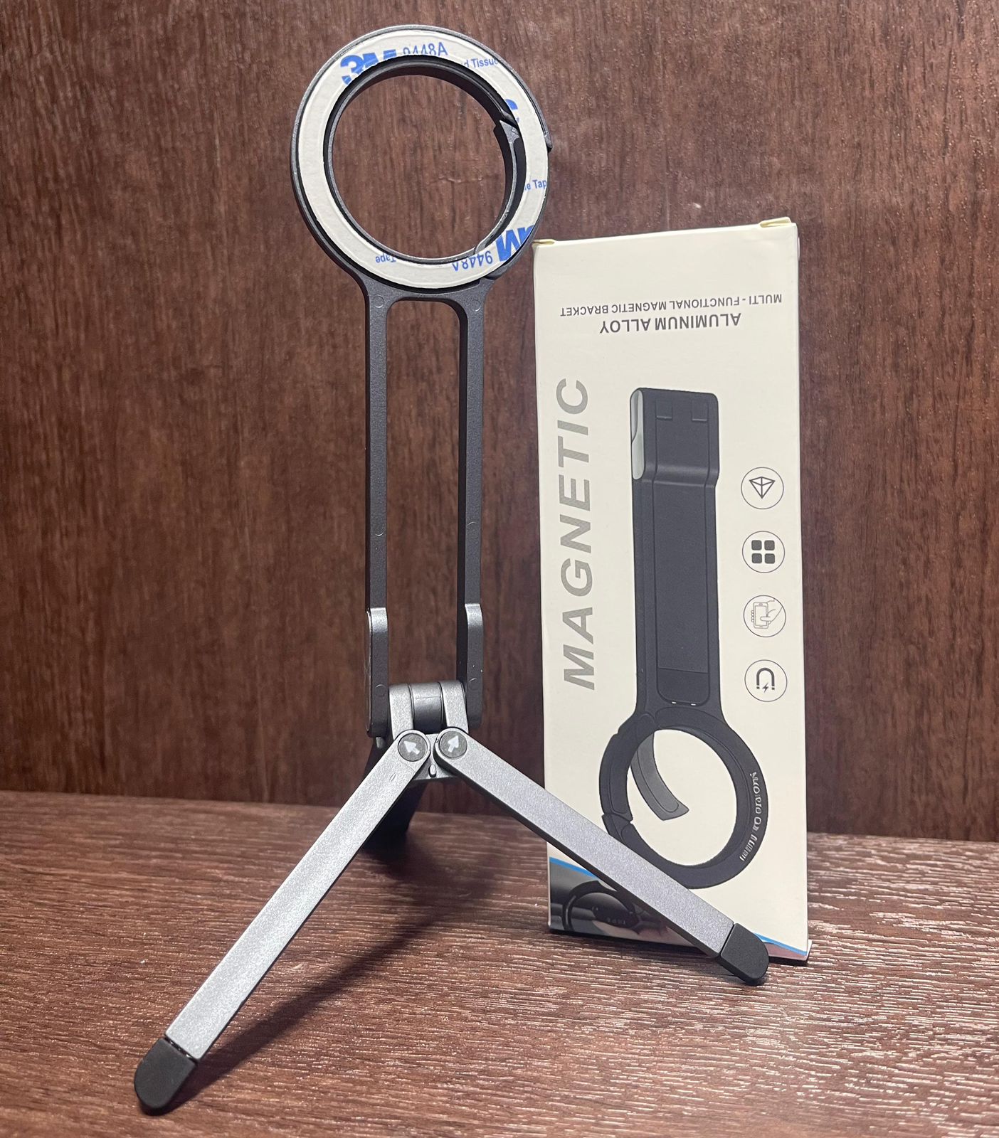 Se trata de un soporte magnético multifuncional de aleación de aluminio para teléfono.